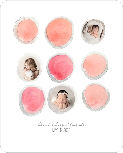 Make a tasteful Photo Collage for your walls with your treasured snapshots and personalize with details like your name, date and more.