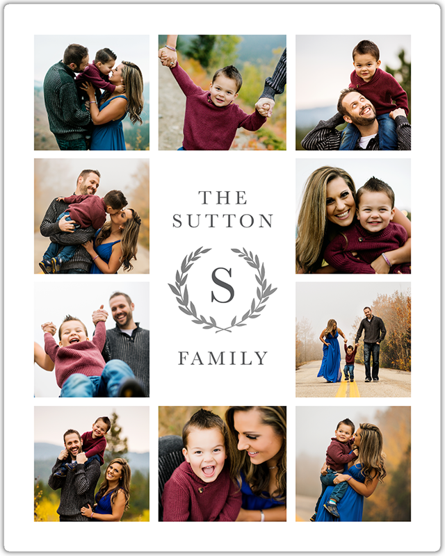 Make a tasteful Photo Collage for your walls with your treasured snapshots and personalize with details like your name, date and more.