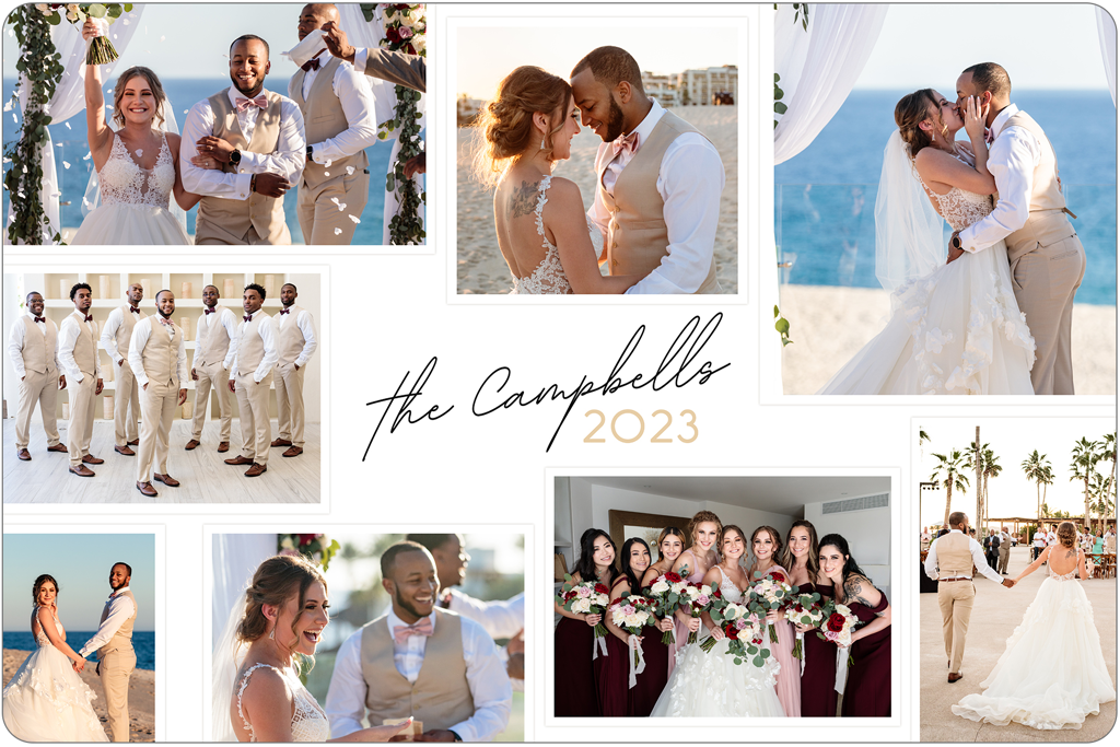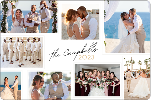 Make a tasteful Photo Collage for your walls with your treasured snapshots and personalize with details like your name, date and more.