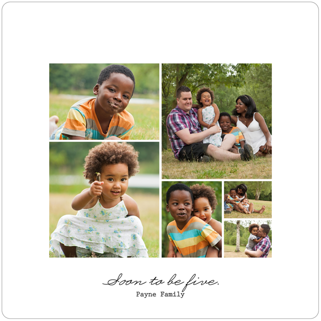 Make a tasteful Photo Collage for your walls with your treasured snapshots and personalize with details like your name, date and more.