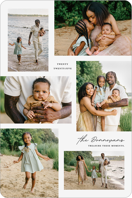 Make a tasteful Photo Collage for your walls with your treasured snapshots and personalize with details like your name, date and more.