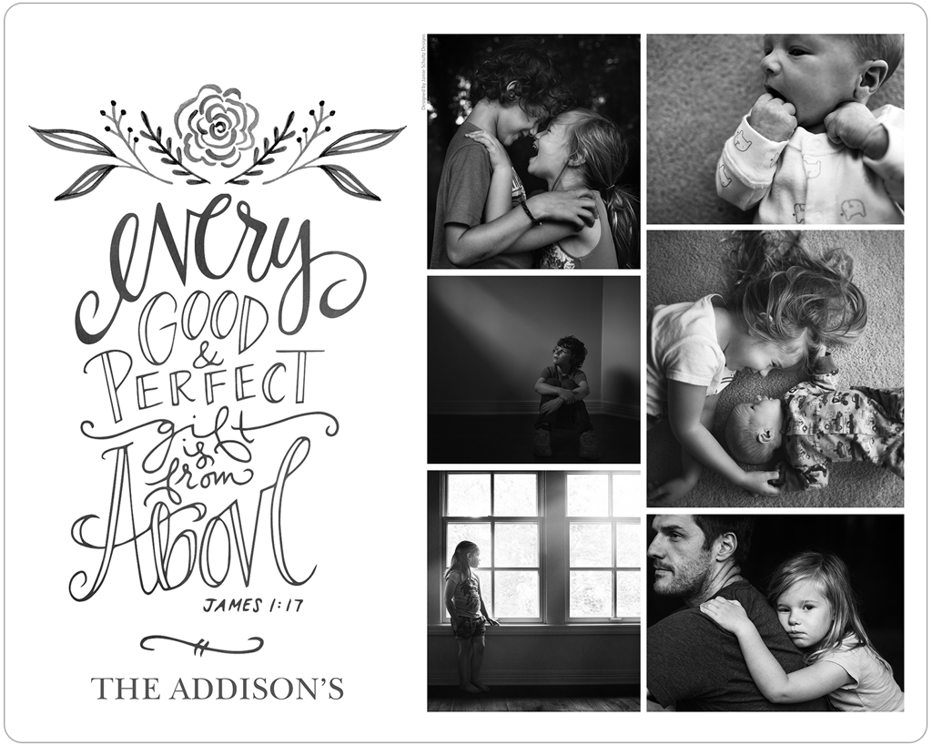 Make a tasteful Photo Collage for your walls with your treasured snapshots and personalize with details like your name, date and more.