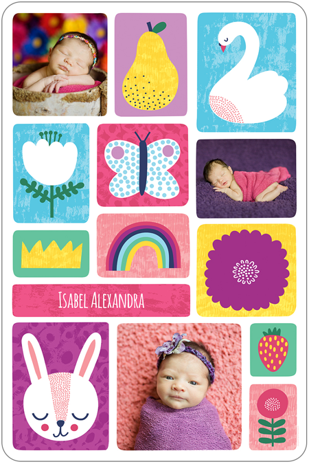 Make a tasteful Photo Collage for your walls with your treasured snapshots and personalize with details like your name, date and more.