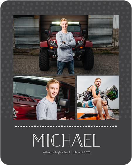 Make a tasteful Photo Collage for your walls with your treasured snapshots and personalize with details like your name, date and more.
