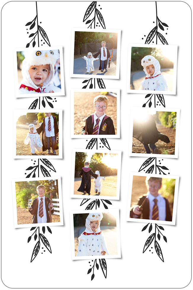 Make a tasteful Photo Collage for your walls with your treasured snapshots and personalize with details like your name, date and more.