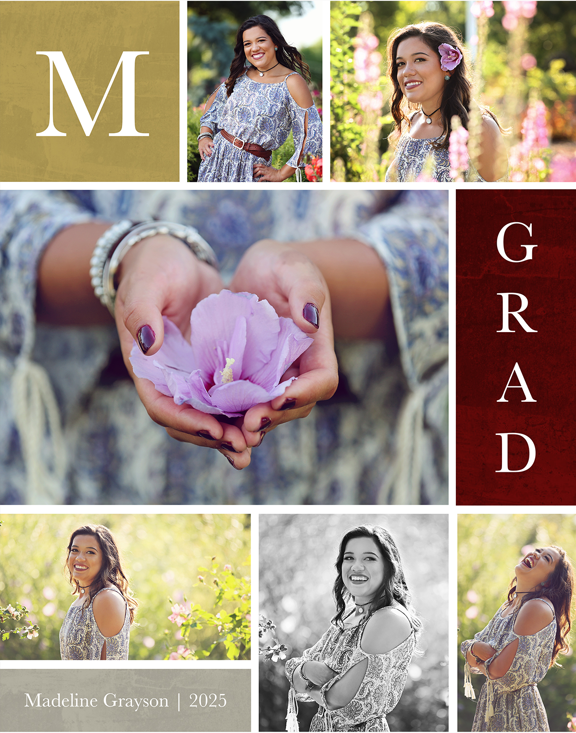 Make a tasteful Photo Collage for your walls with your treasured snapshots and personalize with details like your name, date and more.