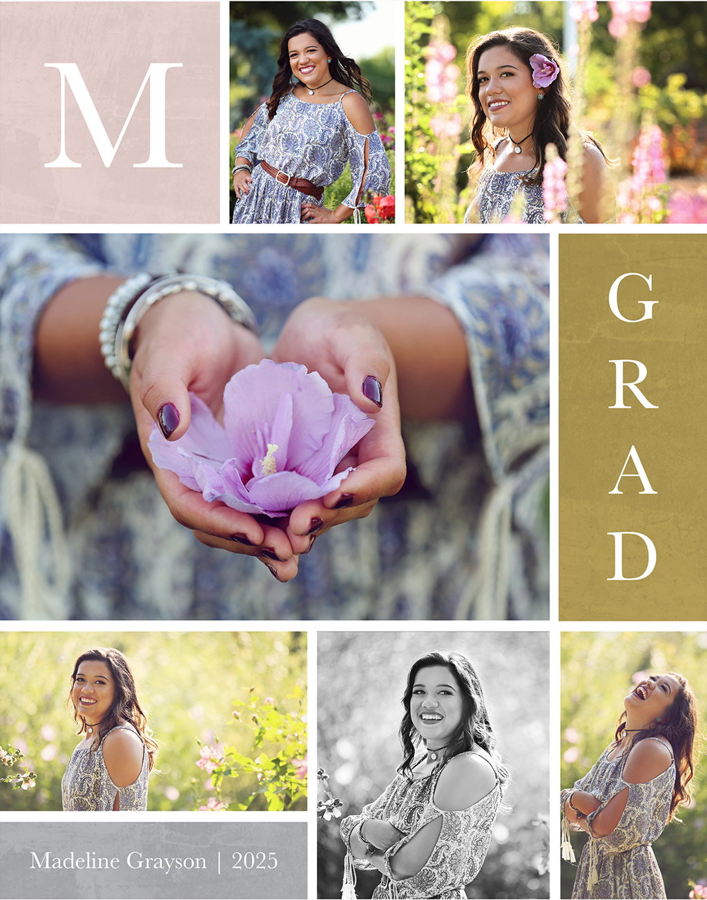 Make a tasteful Photo Collage for your walls with your treasured snapshots and personalize with details like your name, date and more.