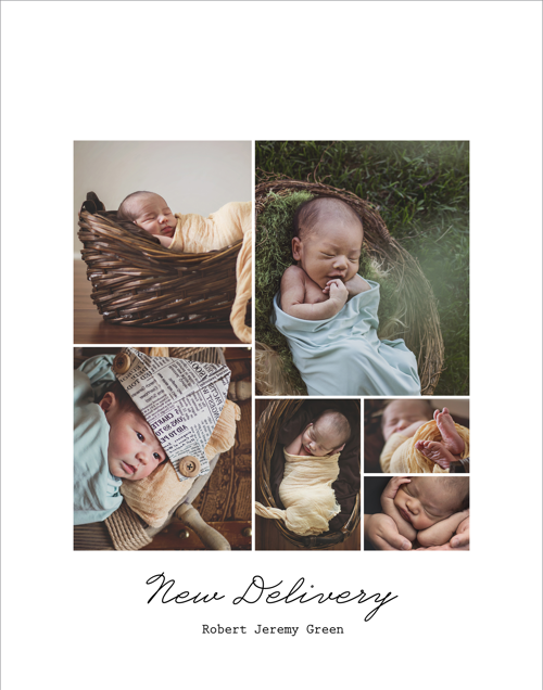 Make a tasteful Photo Collage for your walls with your treasured snapshots and personalize with details like your name, date and more.